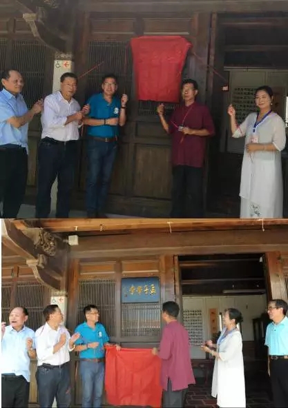 海峡两岸嘉宾:陈永栈、陈天成、石兆珉、吕坤和、孟小红、李仕德等为燕南书院内的《孟子学堂》进行揭牌仪式(图)参与活动的海峡两岸各界嘉宾2016年7月19日,正值台湾