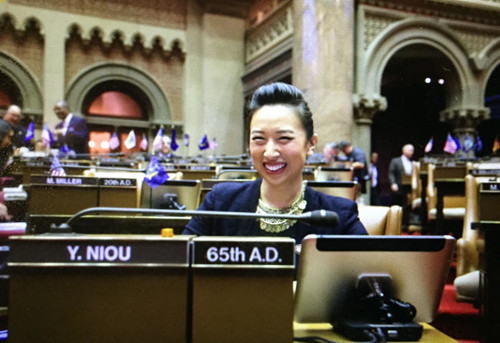 牛毓琳就职。(美国《世界日报》)中国侨网1月5日电据美国《世界日报》报道,美国华埠百年首位华裔州众议员牛毓琳,4日在纽约州府奥伯尼正式宣誓就职。她是代表曼哈顿