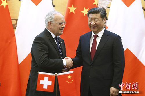 资料图:2016年4月8日,习近平与施奈德·阿曼举行会谈。中新社记者盛佳鹏摄中新社日内瓦1月14日电(记者沈晨彭大伟)应以洛伊特哈德为主席的瑞士联邦委员会邀请,中国国