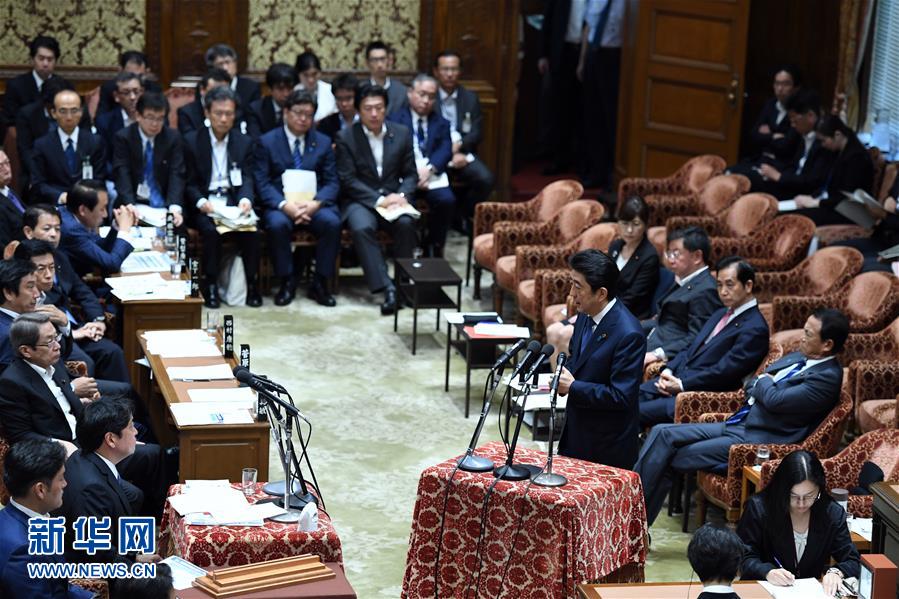 7月24日,在日本东京,日首相安倍晋三(中)在日本国会众议院接受质询。日本国会众议院24日再次对加计学园丑闻进行审查,日本首相安倍晋三接受质询,但审查仍未取得实质