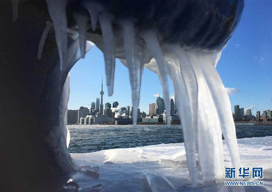 2月13日,加拿大多伦多市区安大略湖边的泊船设施被冰层覆盖。经历1月的暖冬之后,加拿大本周末遭遇今冬首次大幅降温,多伦多和渥太华等多个中东部城市13日发布极度严